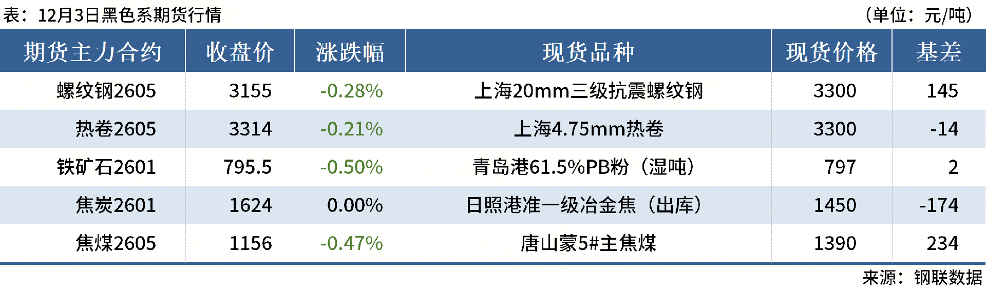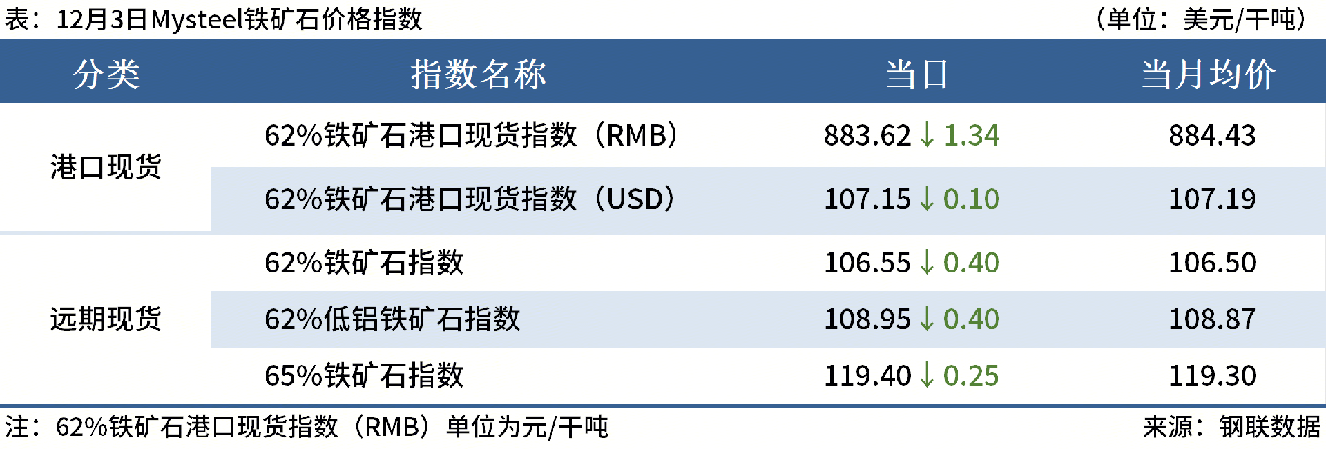 ◎12月3日,淡水河谷預計將達成2025年鐵礦產(chǎn)量指導目標的上限,即3.35億噸,預計同比增加2%。此外公司還預計其2026年鐵礦石產(chǎn)量將在3.35-3.45億噸之間,較2025年目標區(qū)間有所上調(diào)。