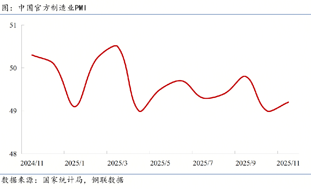 ◎ 國(guó)家統(tǒng)計(jì)局?jǐn)?shù)據(jù)顯示,11月份我國(guó)制造業(yè)PMI為49.2%,比上月上升0.2個(gè)百分點(diǎn);非制造業(yè)PMI為49.5%,比上月下降0.6個(gè)百分點(diǎn);綜合PMI產(chǎn)出指數(shù)為49.7%,比上月下降0.3個(gè)百分點(diǎn)。
